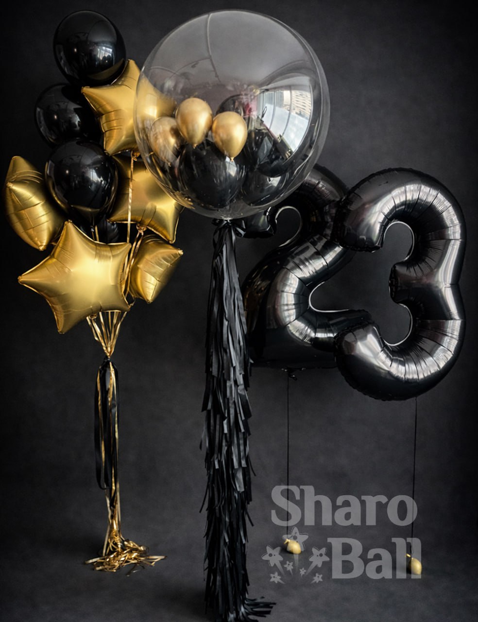 - фонтан-5 звезд 45 см, 5 черных шаров пастель