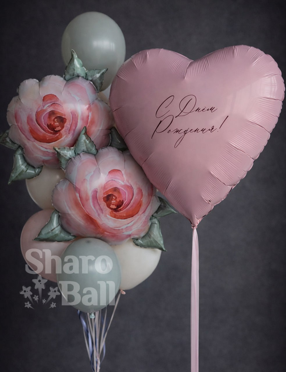 - фонтан-8 пастельных шаров, 2 фольгированных розочки,