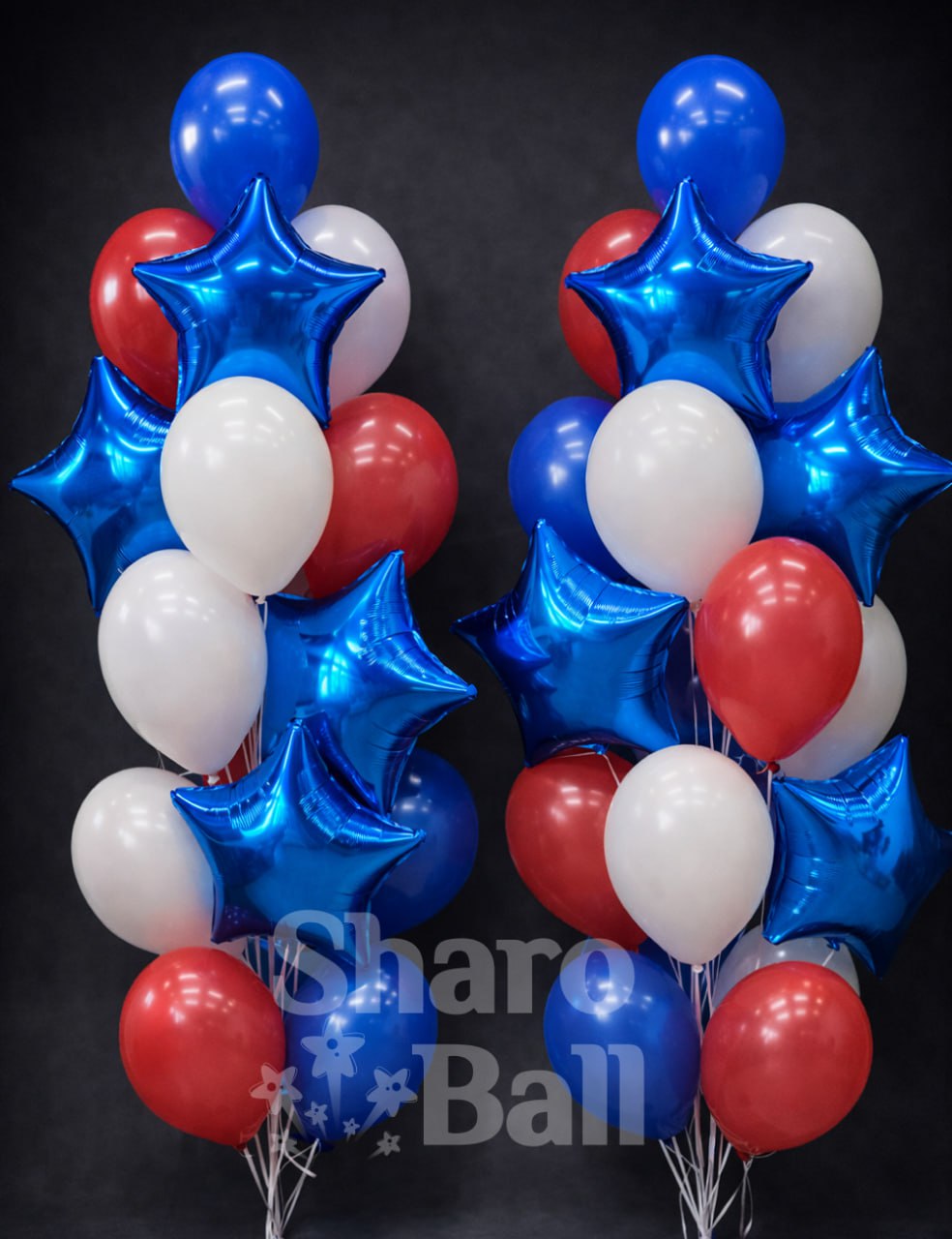 - 2 связки шаров, в каждой 4 звезды и 15 латексных шаров.