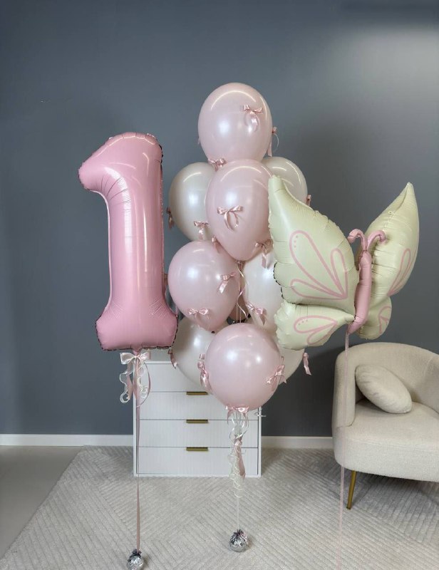 - фонтан из 10 пастельных шаров с бантиками,