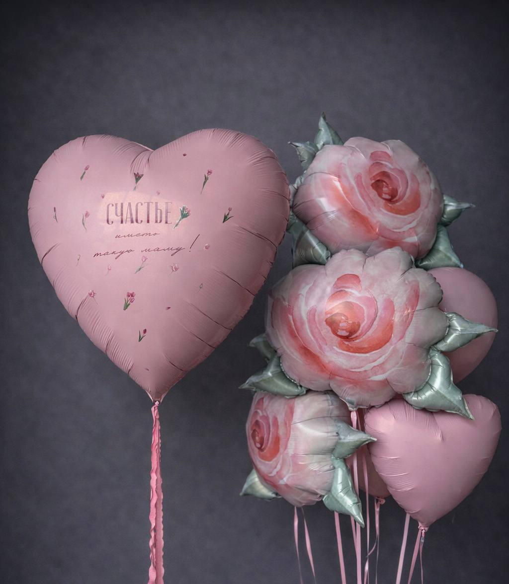 - 3 фигурных шара роза, сердце 45 см,