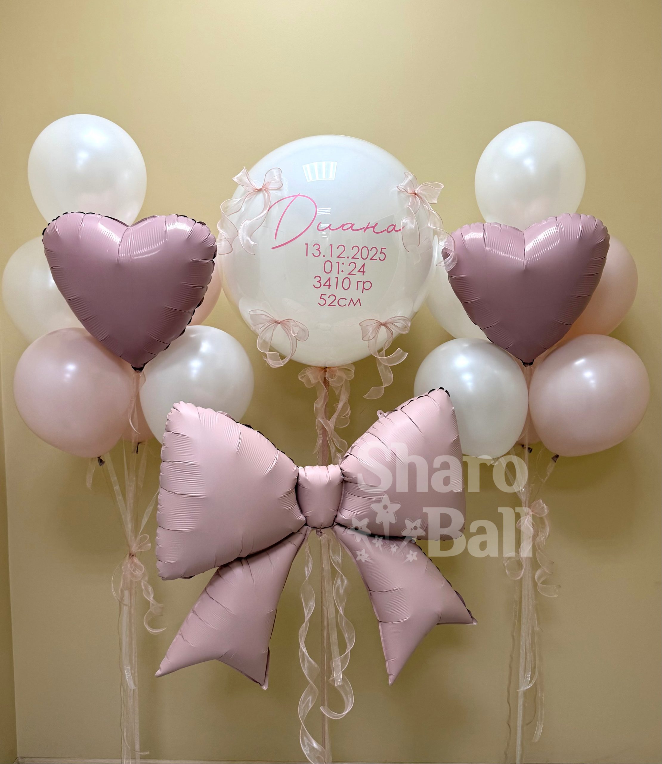 - Две связки по 7 шаров ( в каждой сердце и 6 шаров пастель).